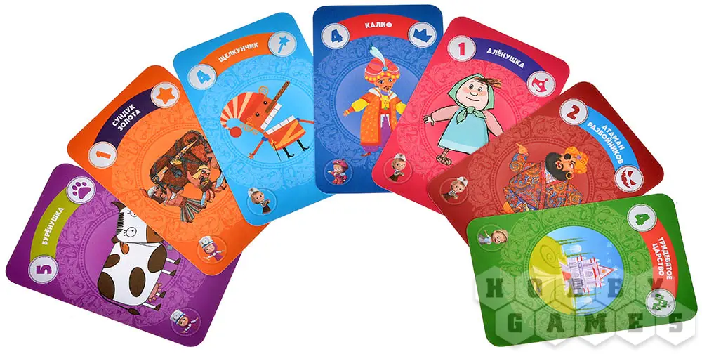 Сказка затянулась. Если сумма цифр на картах больше 10 – ой, не уложились! Игрок собирает все карты и раздаёт случайные карты соперникам. "В следующий раз сдержим себя!" – говорит он.