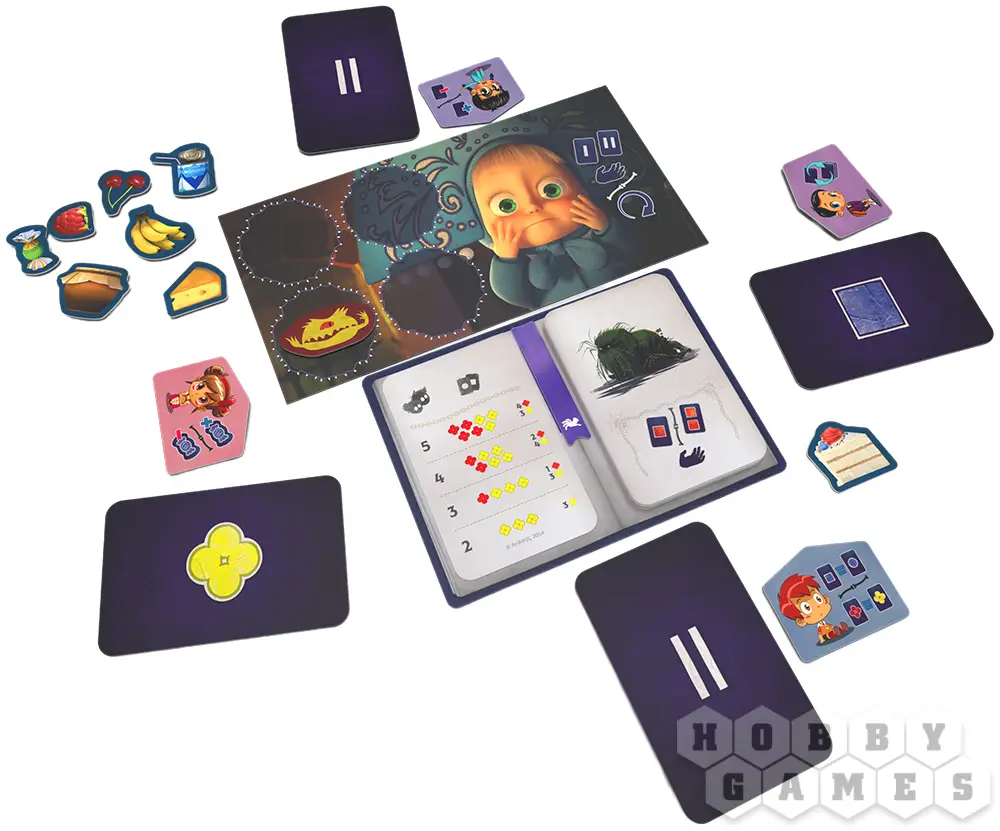 Если вам удалось угадать, чего же так хотелось скушать Машиному гостю, вы получаете бонус и переходите к следующему раунду. Если вы ошиблись, монстрик начинает пакостить – а значит, придётся выложить жетон на планшет Маши (и всё равно получить бонус, хоть и утешительный). Как только на планшете не останется свободных ячеек, Маша испугается, а вы проиграете, так что будьте внимательны! Чтобы такого не случилось, не забывайте пользоваться способностями своих персонажей – это очень полезно.