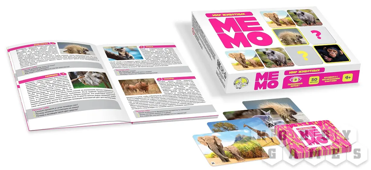 Игра состоит из карточек с парными изображениями. Всего 25 пар (50 карточек). Это игра, безусловно, расширяет кругозор, развивает внимание, тренирует память. Также в комплекте есть буклет с описанием всех мест, изображённых на карточках.