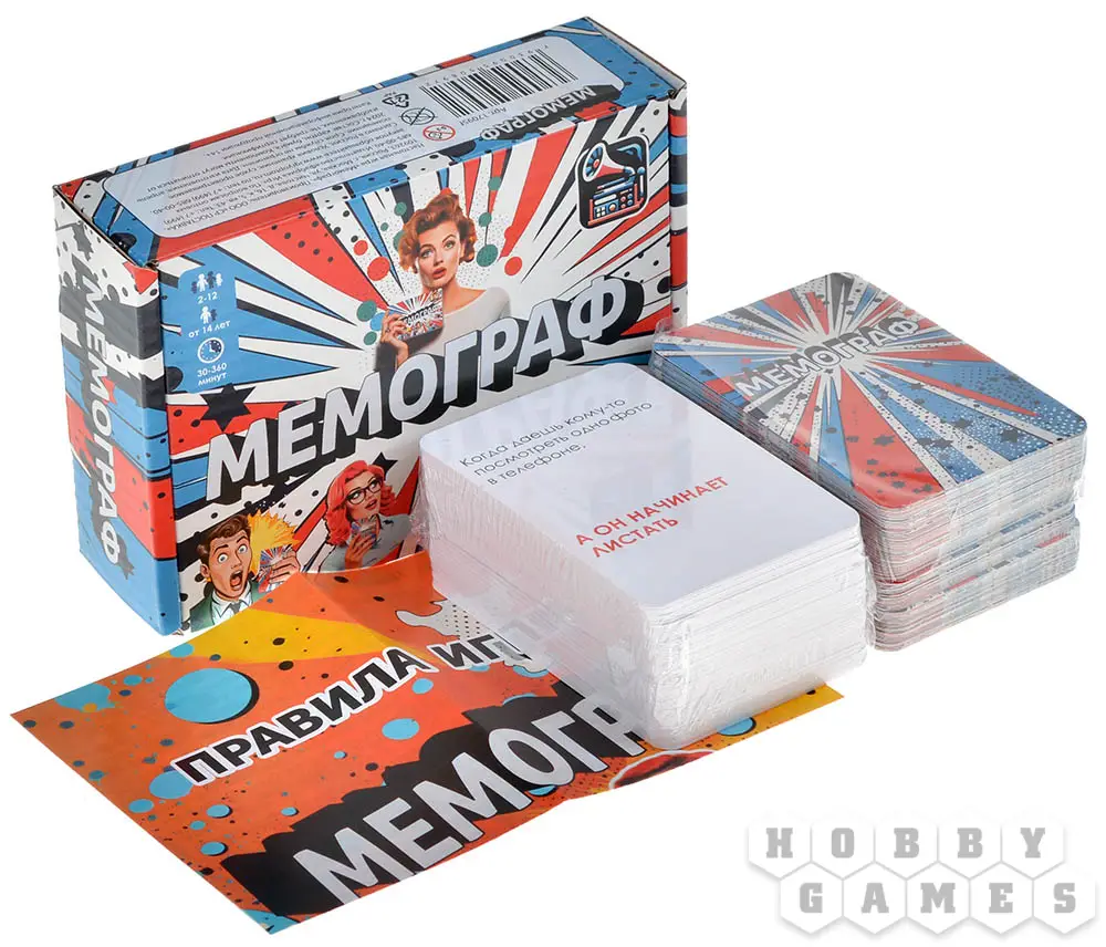 Добро пожаловать в удивительный мир "Мемограф" – настольной игры, где вашим главным оружием станет... чувство юмора! Да-да, вам предстоит погрузиться в захватывающий процесс создания максимально смешных и остроумных историй. Каждый участник здесь может стать мастером смеха, а каждая игровая карта будет, так сказать, холстом для вашего блистательного творчества.