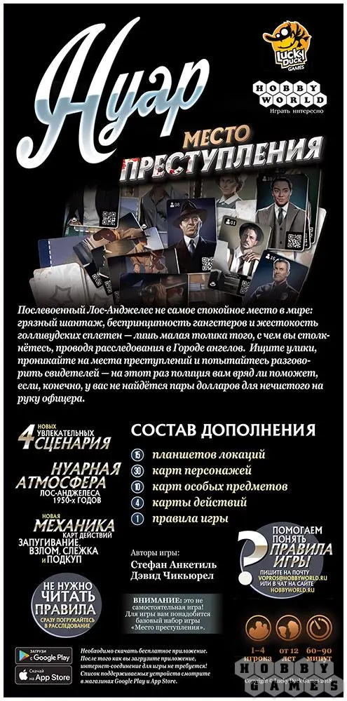 Обращаем ваше внимание, что для игры вам потребуется базовая версия "Место преступления", а также установка специального бесплатного приложения Chronicles of Crime для телефонов и планшетов.