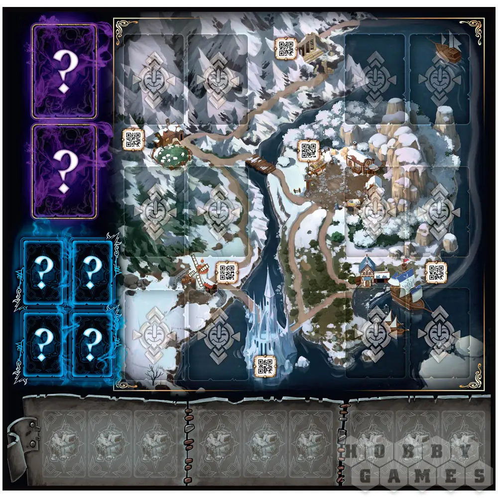 Каждый сценарий предлагает вам поиграть на одной из сторон игрового поля и подразумевает определённые локации и задания от Мерлина. Как только вы будете готовы, смело нажимайте на кнопку "Дальше" и автоматически окажетесь в режиме осмотра 3D-сцены. Один игрок осматривает локацию, а другие, слушая его описание, выкладывают соответствующие карты на стол.