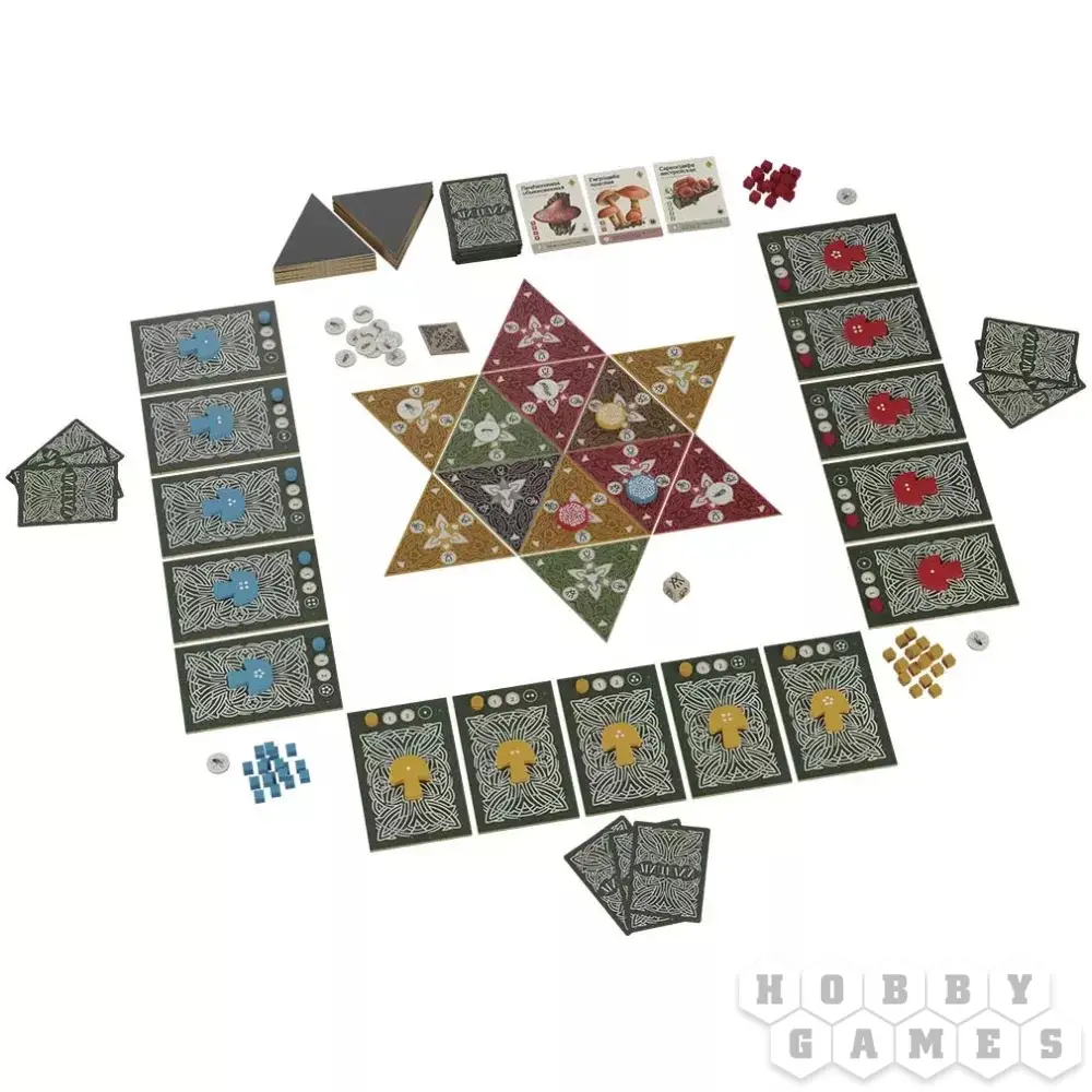 "Мицелий" – это стратегическая настольная игра о соперничестве грибных царств за контроль над лесом и ресурсы. В этой игре вам предстоит построить свою собственную грибницу, разбрасывать споры, выращивать грибы и защищать свои территории от противников. Грибы, с виду милые и безобидные, на самом деле ведут ожесточённую борьбу за пространство под землёй, плетя обширные сети мицелия. Ваше задание – эффективно развивать свою грибную империю, но не всё будет под вашим контролем. Споры разлетаются в разные стороны под влиянием ветра, а противники могут блокировать и захватывать ваши участки.