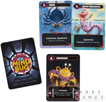 Игра начинается моментально – у каждого игрока уже есть готовый набор из десяти существ и два Мозгохвата. Вам не нужно собирать колоду или копить ресурсы: здесь нет слабых карт и неравного старта. Вы сразу же погружаетесь в гущу схватки, где всё решают ваши решения и умение предугадывать намерения противника. Единственная цель – первым свести три очка здоровья соперника к нулю!