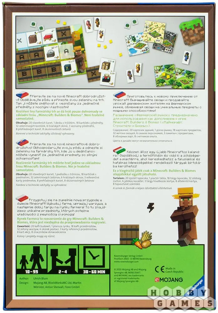 Что такое Майнкрафт знает, кажется, каждый. Мир, полный возможностей, в котором можно строить, выращивать, творить... Да почти жить! А какая жизнь без денег, товарооборота и добавленной стоимости? Теперь вы можете стать фермером и в настольной игре Minecraft: Builders and Biomes. Выращивайте зерновые и овощные культуры, ведите личное хозяйство и продавайте излишки местным жителям, которые с радостью заплатят вам за еду. Развивая ферму и торгуя своей продукцией, вы сможете получить способности и предметы – прямо как в компьютерной версии!