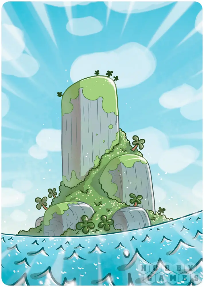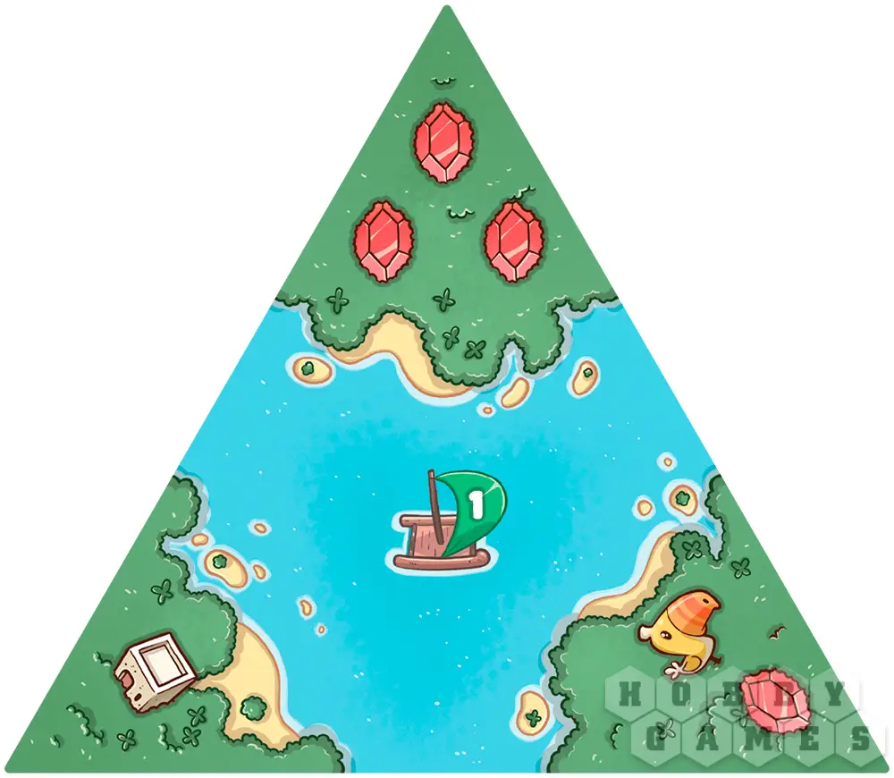 Игроки собирают отдельные архипелаги так, чтобы центральные состояли из всех жетонов. Будьте внимательны! Ресурсы, которые являются целью вашего поиска, могут оказаться на обратной стороне жетонов. Ну а теперь пора продемонстрировать свою ловкость! Шлёпните по раскрытой карте пророчества, как только подходящий остров будет собран! Ура! Раунд выигран, и долгожданная карта пророчества достается вам.