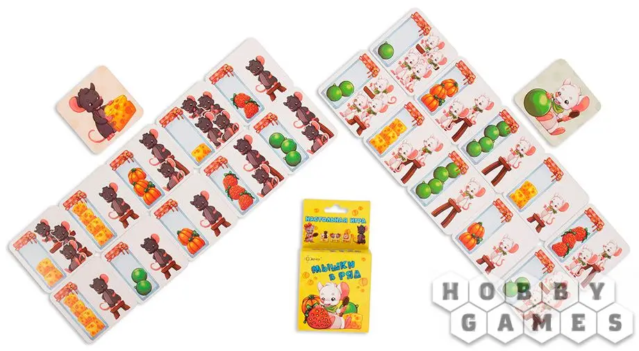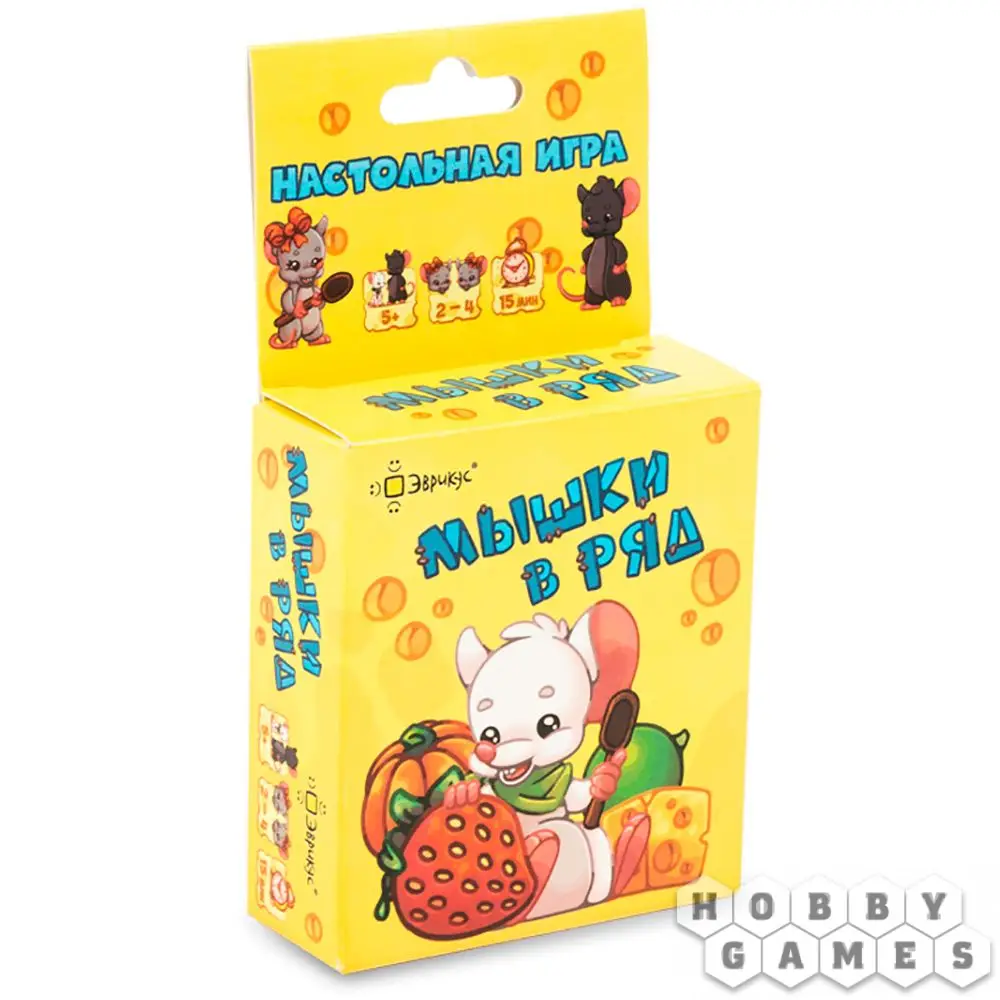 "Мышки в ряд" – это очень простая настольная игра, которая идеально подойдёт для детей дошкольного возраста. Быстрые партии и компактный размер позволяют брать игру в дорогу, а милые иллюстрации понравятся не только малышам, но и их родителям.