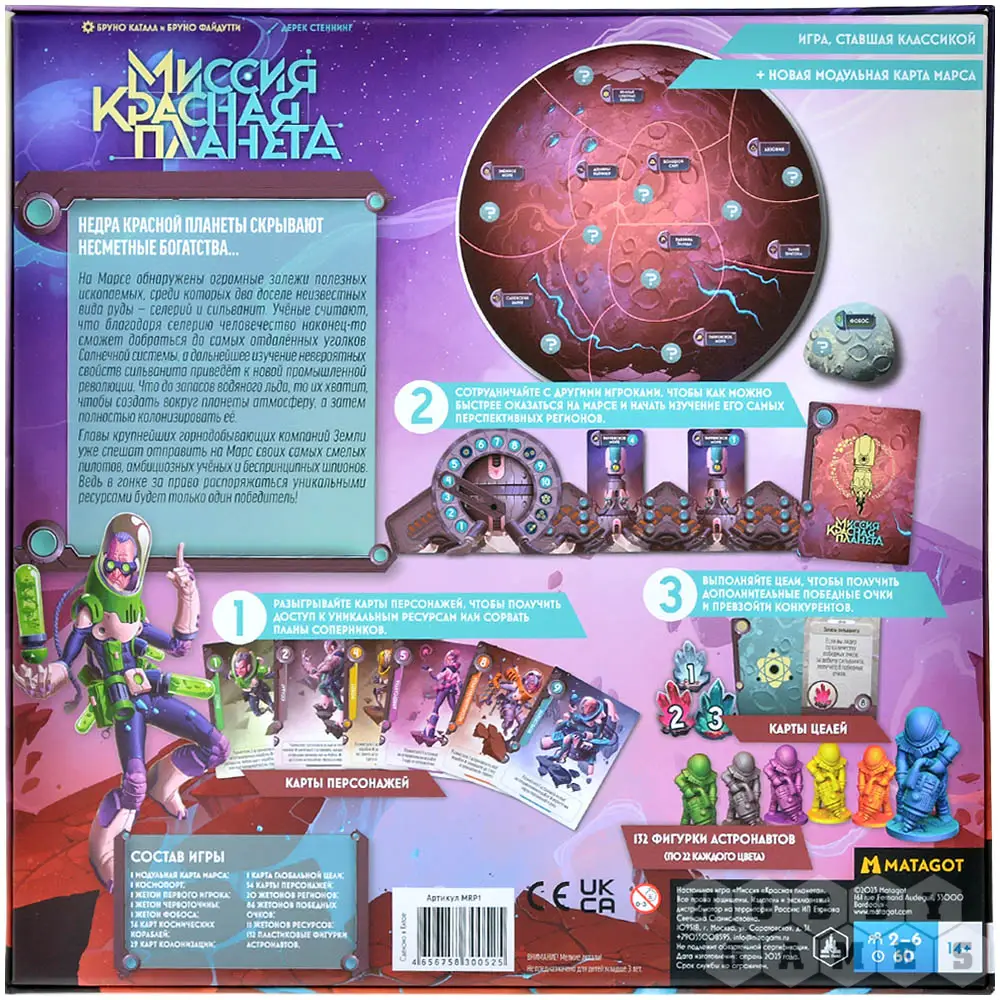 Вы – глава горнодобывающей корпорации, и у вас есть всего десять раундов, чтобы опередить конкурентов в борьбе за марсианские богатства. Ваша миссия: отправить астронавтов к самым ресурсным зонам планеты и собрать как можно больше ценных материалов. В вашем распоряжении – команда из девяти уникальных специалистов, чьи навыки варьируются от помощи в космических путешествиях до диверсий против кораблей соперников.