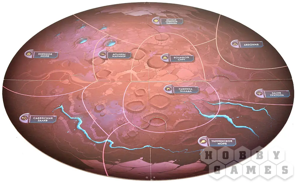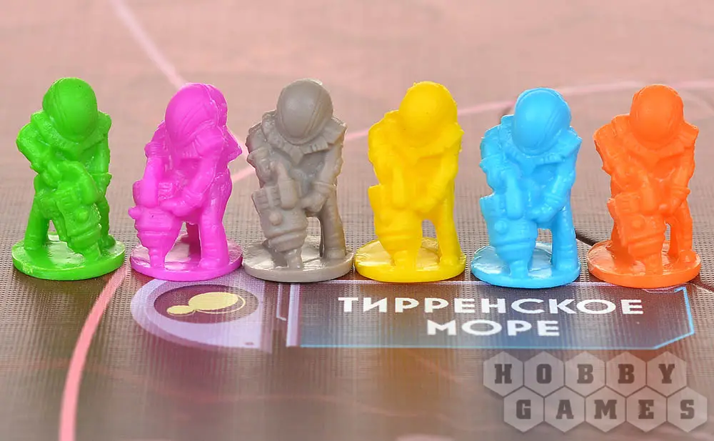 Каждый раунд начинается с тайного выбора карты персонажа, определяющей ваши действия. Корабли отправляются к разным секторам Марса – ресурсы в каждом из них остаются загадкой до посадки. Трижды за игру вы будете собирать добытые ресурсы для получения очков, а секретная миссия и карты исследований могут принести дополнительные баллы или изменить ценность открытий.