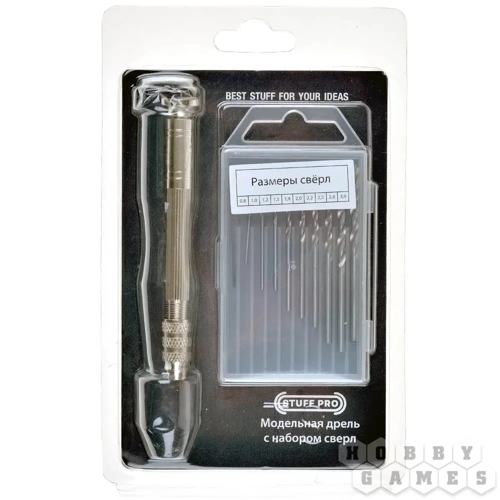 Перед вами модельная дрель, оснащённая возвратной пружиной. При помощи такой дрели можно просверлить, к примеру, орудийный ствол пластиковой миниатюры или же сделать различные повреждения в броне техники. Дрель удобно отзывается даже малейшему нажатию, что позволит вам аккуратно и качественно работать с мелкими деталями. Также такая дрель подойдёт и для других видов творчества, например, гравировки, полировки или работ по дереву.