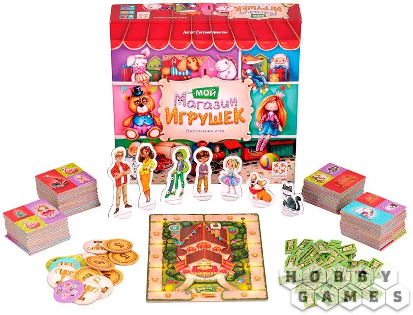 Вы и ваши друзья решили открыть магазины игрушек и посоревноваться, кто получит больше прибыли. Выбирайте себе персонажа, получайте карточку с кассой и начинайте наполнять свой магазин игрушками!