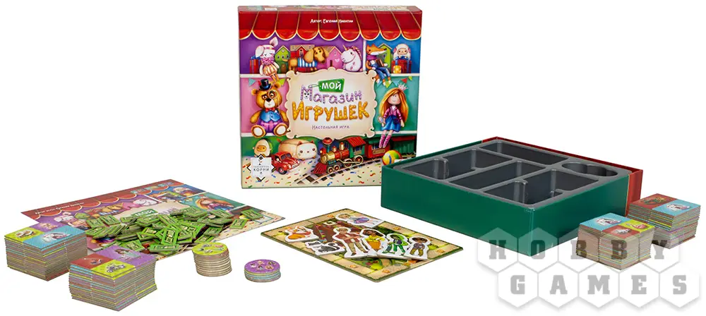 Вы и ваши друзья решили открыть магазины игрушек и посоревноваться, кто получит больше прибыли. Выбирайте себе персонажа, получайте карточку с кассой и начинайте наполнять свой магазин игрушками!