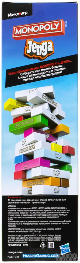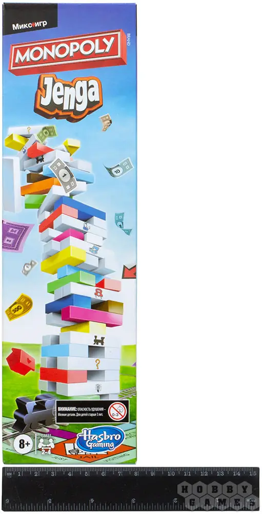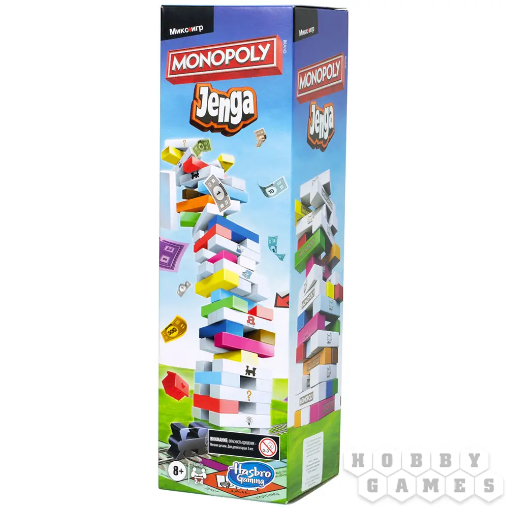 "Монополия" и "Дженга" – это одни из самых популярных и любимых семейных игр. Что же получится, если их объединить? В новой настольной игре "Монополия Дженга" особые свойства полей из "Монополии" переносятся на блоки из "Дженги" и диктуют вам условия нового хода. Например, блок "В тюрьму" заставит вытянувшего его игрока пропустить ход – как аналогичное поле в "Монополии". Игра придётся по вкусу фанатам обеих серий и станет хорошим подарком для детей от 8 лет, привнеся ещё больше веселья в любой праздник – от Нового года до дня рождения!
