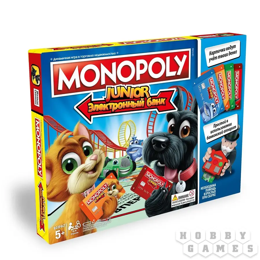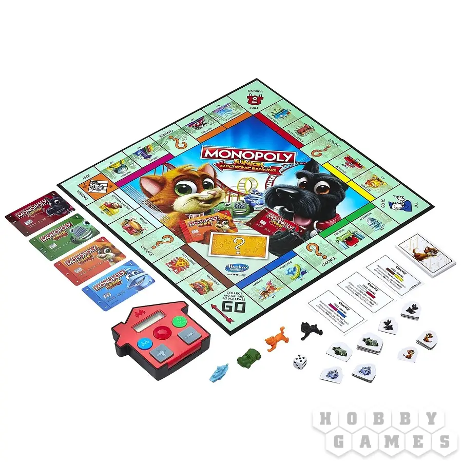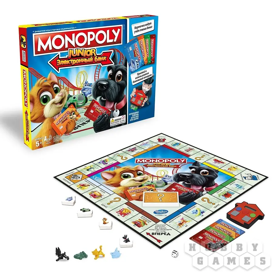 Все предметы набора Monopoly Junior Electronic Banking выполнены в интересном дизайне - участникам предстоит фигурками забавных животных, а события будут разворачиваться на красочной платформе. В процессе игры девочки и мальчики без труда освоят азы экономической науки и смогут развить стратегическое мышление.