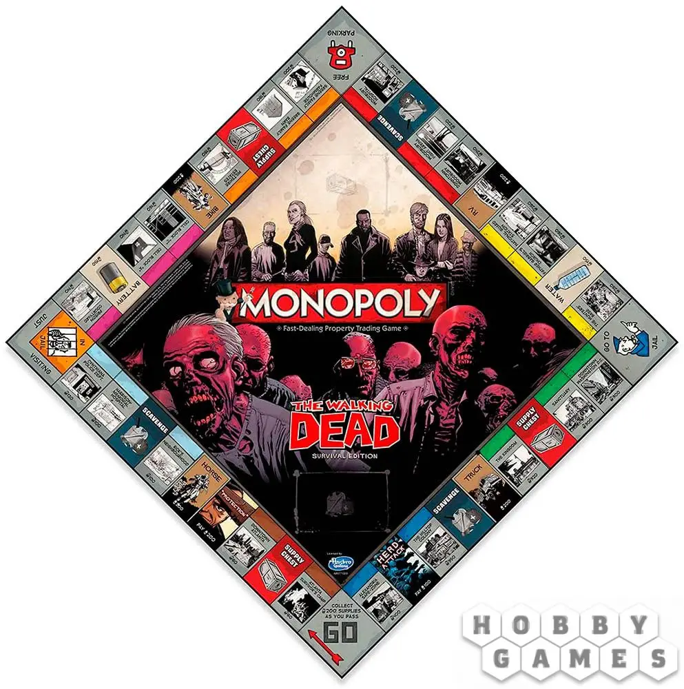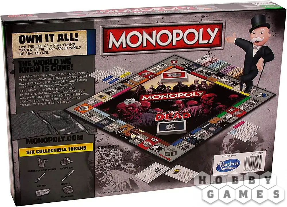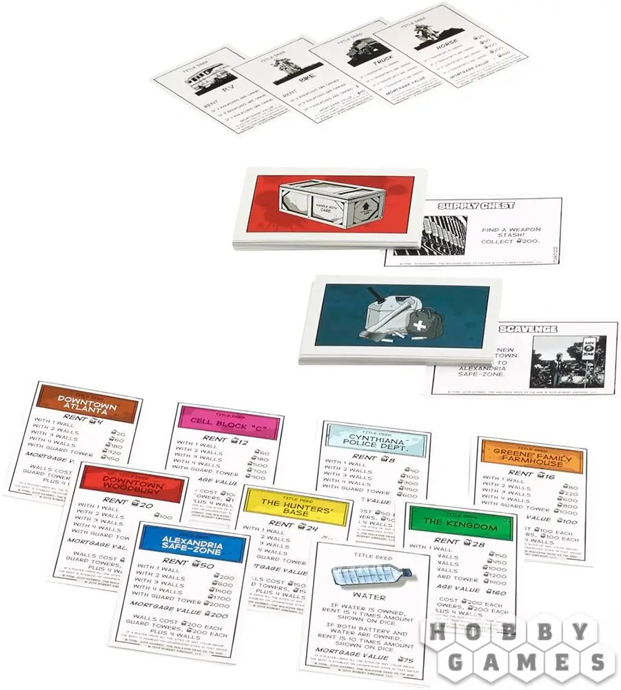 Колония Хиллтоп выставлена на продажу, центр Атланты приватизирован, район Рика меняет владельца, а блок клеток А внезапно становится доступным для покупки. Эта монополия полностью соответствует стилю сериала "Ходячие мертвецы".