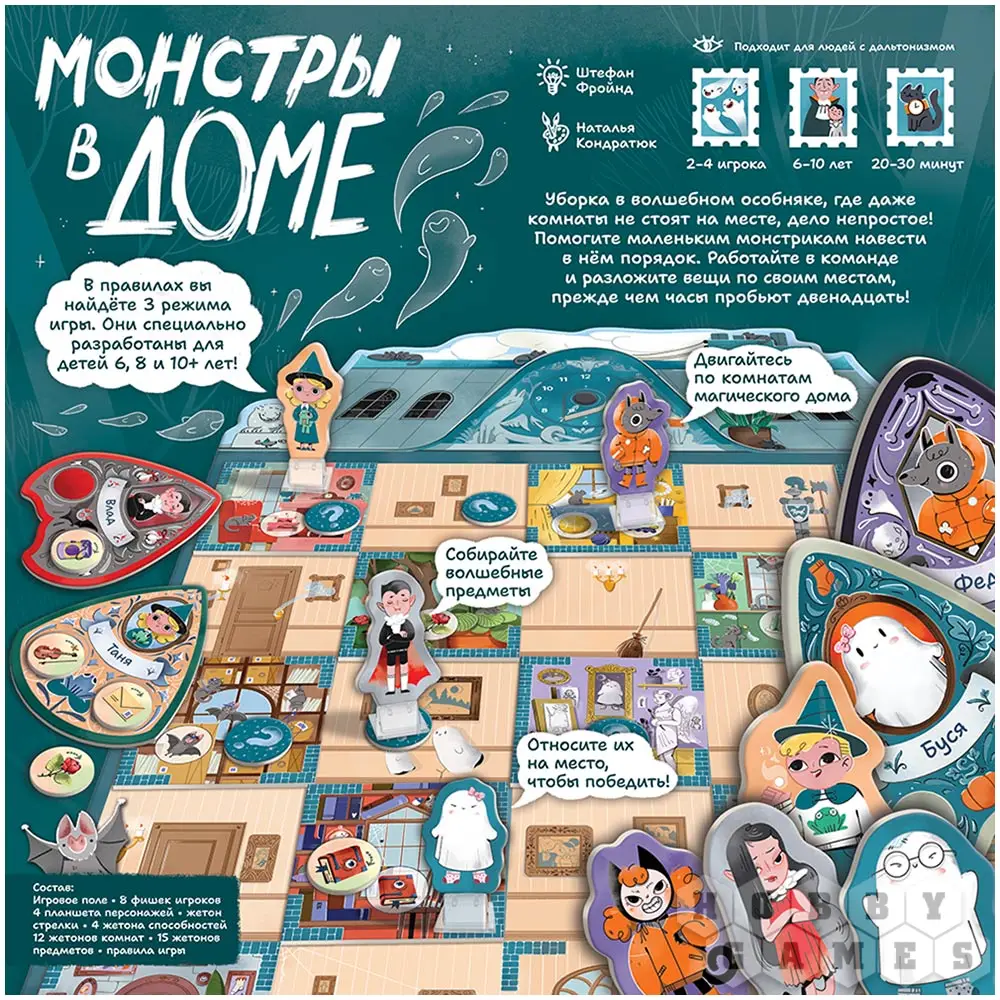 “Монстры в доме” разработаны специально для детей: вы найдёте три отдельных режима игры, адаптированных под разный возраст, что позволит всей семье постепенно осваивать правила и получать наслаждение от процесса. Игра не только подарит массу положительных эмоций, но и научит детей действовать сообща, развивая стратегическое мышление и внимательность. А красочное оформление сделает каждую партию незабываемым приключением!