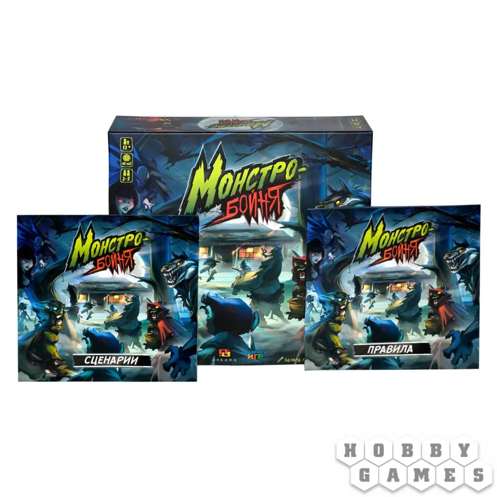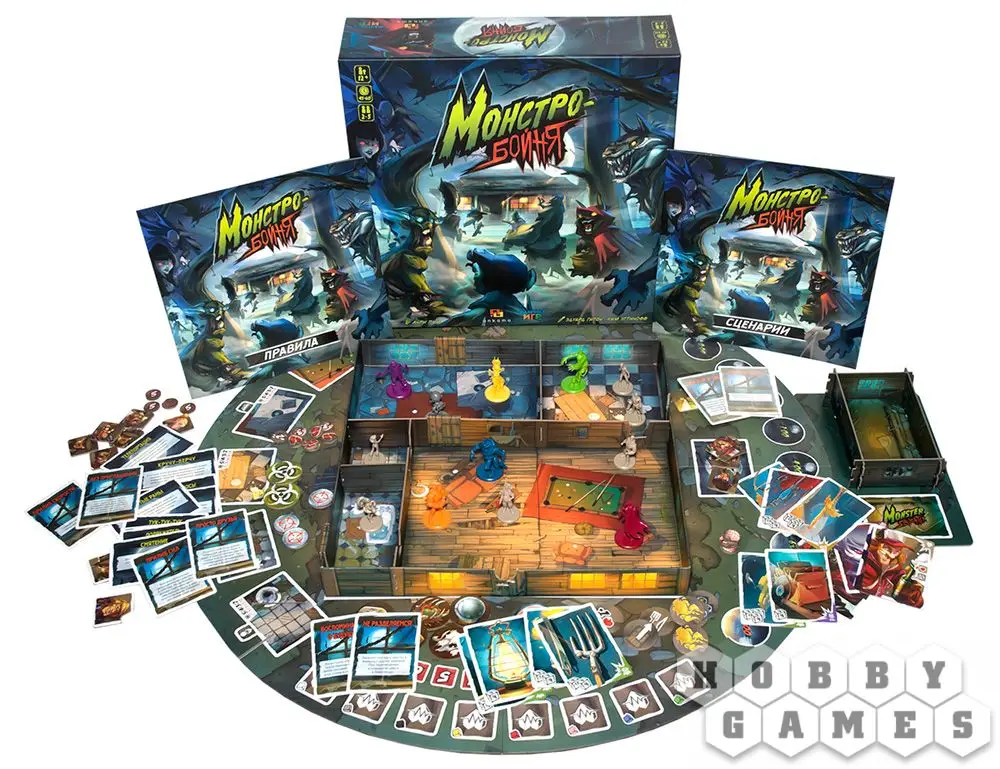 "Монстробойня" – настольная игра, погружающая в атмосферу видеоужастиков восьмидесятых годов, таких, где группа людей случайно попадают в старую заброшенную хижину в тёмном глухом лесу. Ну, и как нетрудно догадаться, всякая нечисть так и тянется к этому домику, на дух человечий, чтобы полакомиться свежим мясом!