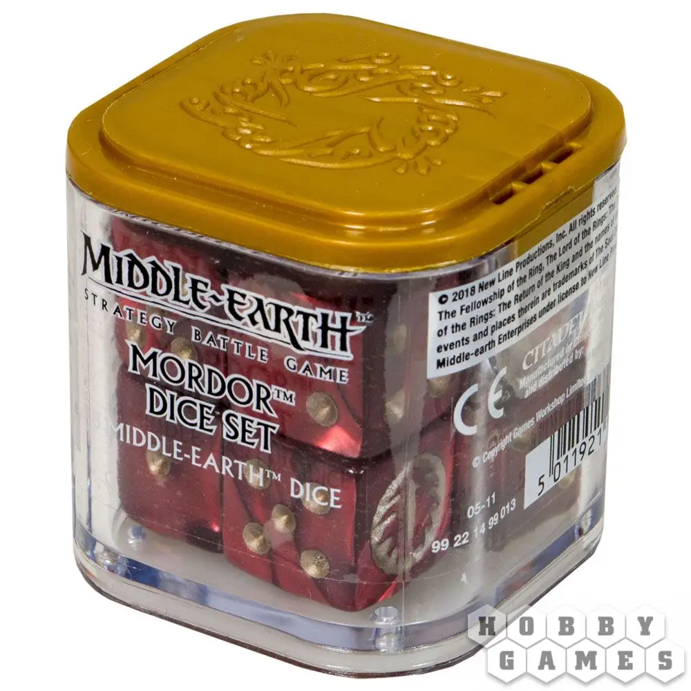 Набор из 8 кубиков красного цвета с эффектом мрамора, а на месте "6" изображено "Око Саурона", следящее за всеми передвижениями вражеских героев и армий!