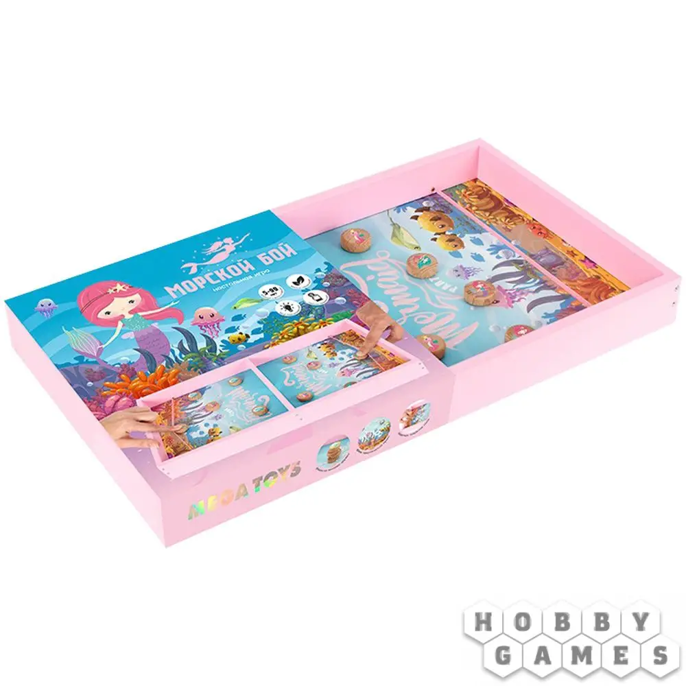 Сыграйте в настольную игру "Деревянный морской бой", оформленную в духе увлекательного подводного приключения!