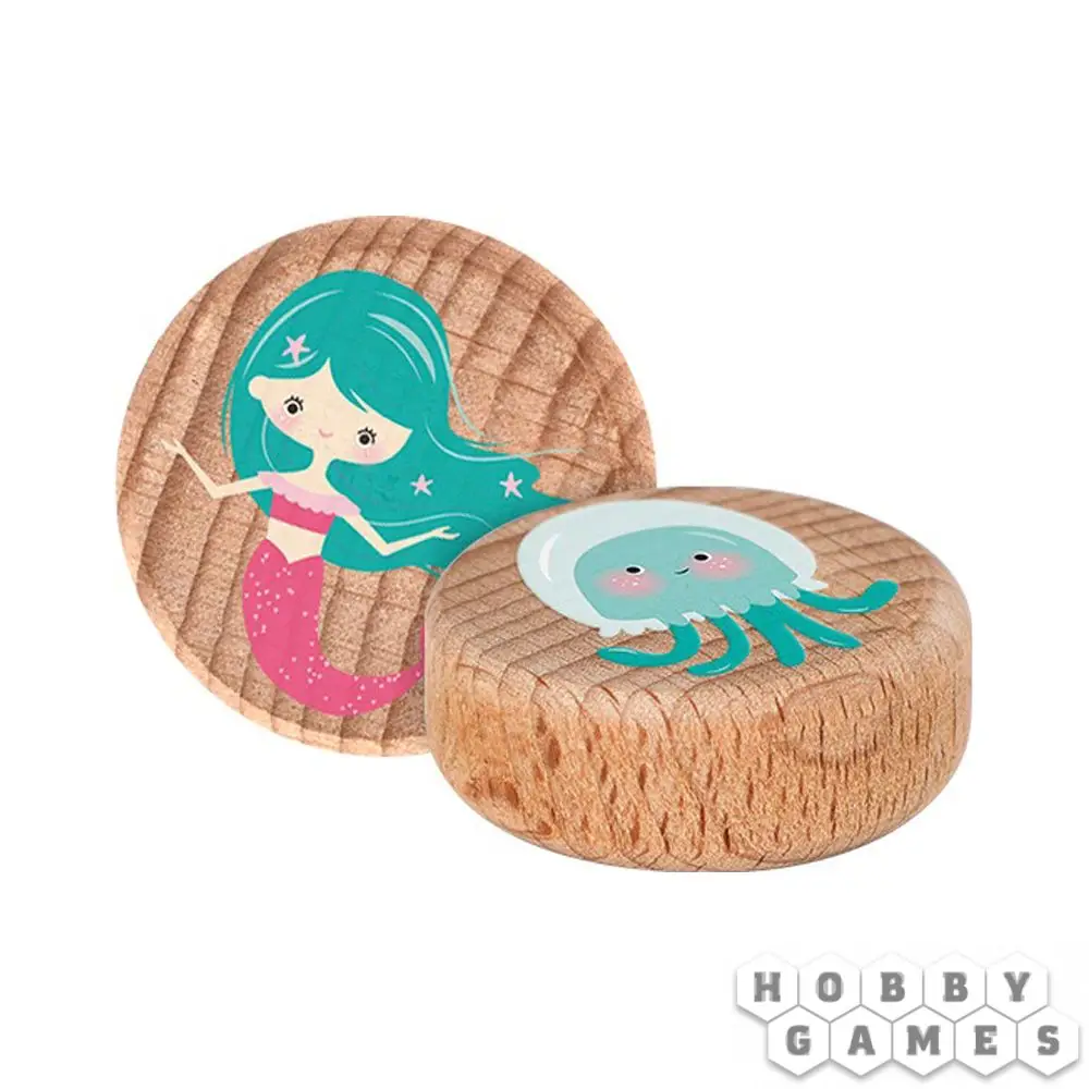 Эта игра отлично подойдёт как детям, так и взрослым. Противостояние русалок и медуз: устройте турнир всей семьёй и проверьте, кто из вас самый меткий и быстрый представитель подводного царства! Несмотря на свою простоту, игровой процесс очень увлекательный, а игровые компоненты и тематическое игровое поле, изготовленные из натурального массива бука, сделают игру максимально комфортной и атмосферной.
