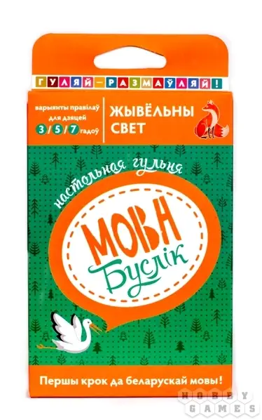 Настольная игра “Мова. Буслік. Жывёльны свет” даёт возможность познакомиться с дикими и домашними животными и птицами или закрепить их беларуские названия. Четверть представленных здесь слов – уникальные. Знаете, кто такие “Гіль“ и “Шуляк”? Интереса для играющих добавят яркие картинки и разные варианты правил игры.