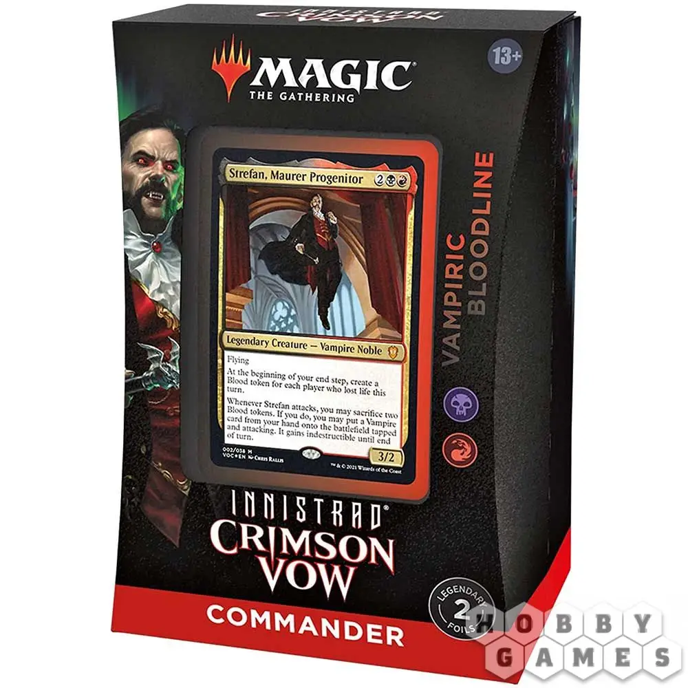 "Багровая Клятва" (Crimson Vow) – это вторая часть выпуска Иннистрад, посвящённая, как и "Полночная Охота", ночным монстрам европейской мифологии, популярным в фэнтези и массовой культуре. Если "Полночная Охота" раскрывала игрокам в Magic тему оборотней, ключевые существа "Багровой Клятвы" – это вампиры, бледные хладнокровные кровососы, чей образ неразрывно связан с готическим стилем, летучими мышами и, конечно же, кровью.
