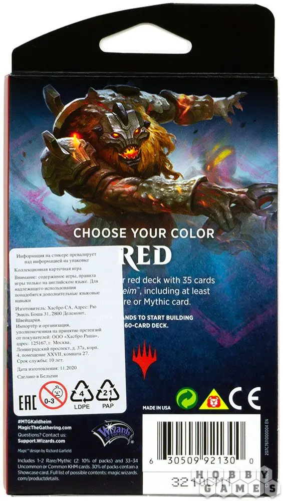 Усильте свою колоду MTG с помощью тематических бустеров любого цвета из вдохновлённого скандинавскими легендами нового выпуска Kaldheim. Внутри каждого бустера вы найдёте 35 карт, принадлежащих к одной стихии, среди которых 1-2 раритетных или редких карты. Всего в выпуске 6 тематических бустеров: синий бустер Воды, красный – Огня, зелёный – Жизни, чёрный – Смерти, белый – Защиты и один уникальный бустер Викингов. Тематические бустеры позволяют вам добавить в колоду карты определённого цвета, если вы уже определились с любимой фракцией – или же попробовать несколько новых.