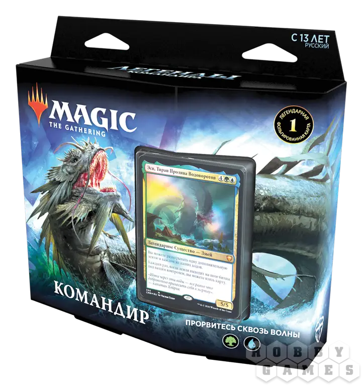 Колода для Commander «Прорвитесь сквозь Волны» выпуска «Commander Legends» – это полностью готовая к игре колода для формата Командир. От других форматов он отличается правилами построения колоды. Прежде всего тем, что в колоде должно быть ровно 100 карт, и ни одна из них (кроме базовых земель, конечно) не может повторяться.