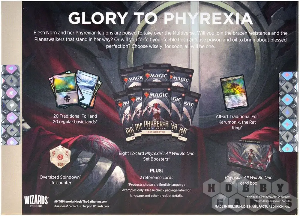 Расширение Phyrexia: All Will Be One посвящено этим событиям: в новых бустерах вы найдёте фирексианцев, что жаждут привести всё сущее к единству (в их пугающем понимании), несломленных бунтовщиков, что не собираются преклонить колено перед Элеш Норн, и многое другое!