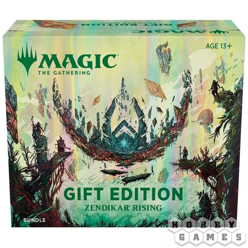 Bundle Gift Edition выпуска Zendikar Rising включает в себя 10 драфт-бустеров на английском языке. Также внутри вы найдёте большой счётчик жизней Spindown, стилизованную коробку для карт и комплект базовых земель. Наборы Bundle для Magic: The Gathering позволяют быстро и не затратно втянуться в новый выпуск, а также собрать свою первую колоду. Уникальность подарочного бандла в том, что вы дополнительно получаете один коллекционый бустер выпуска.