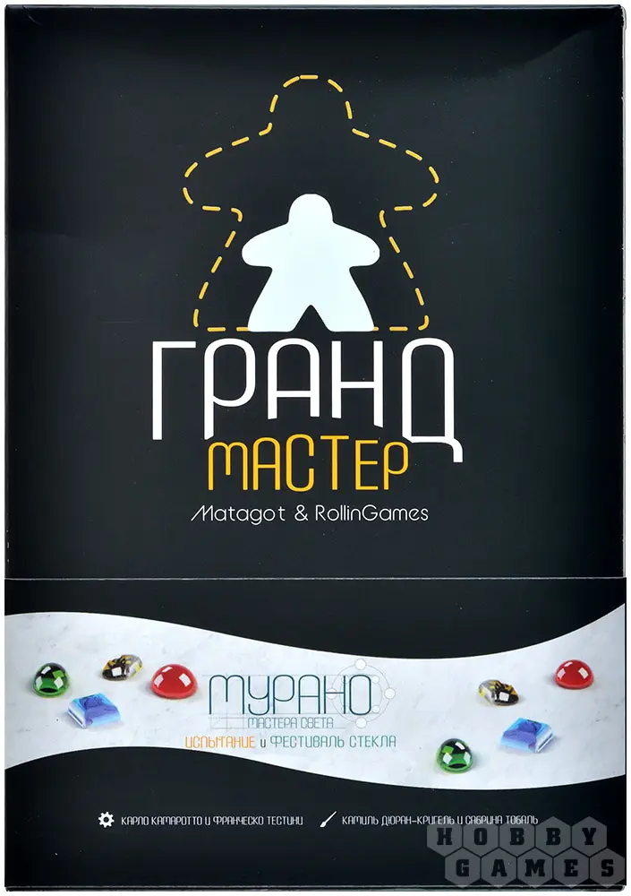 "Грандмастер" – это не просто дополнительные карточки для базовой игры "Мурано: Мастера Света", а целый сборник новых испытаний для опытных стеклодувов. В комплекте вы найдёте не только мешок для хранения осколков и новые карты, но и новые модули, которые позволят вам сыграть по-новому. В режиме "Одиночное испытание" вы бросите вызов самому себе, модуль "Фестиваль стекла" вносить изменение в стандартное получения карт творений, а "Испытание магистра" станет испытанием для самых настоящих экспертов благодаря новому условию окончания игры и правилу, ограничивающему получение лир.