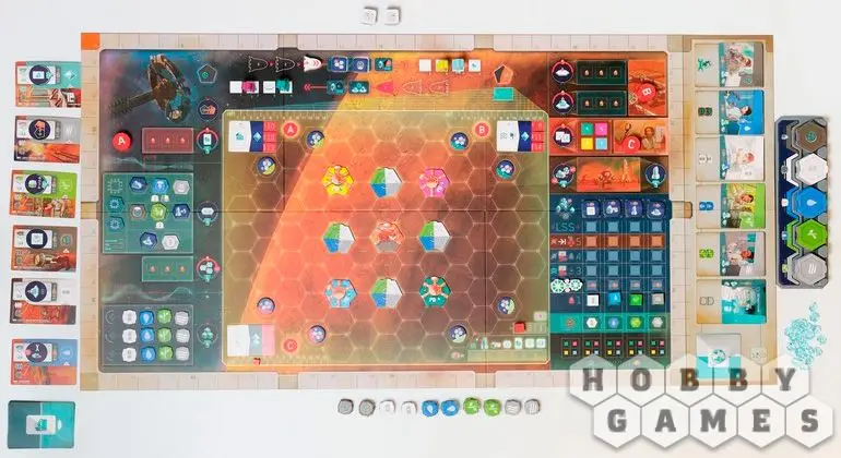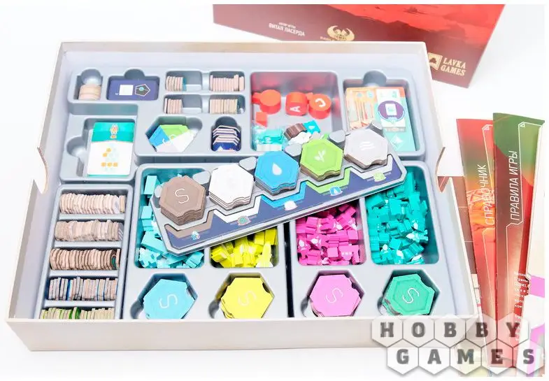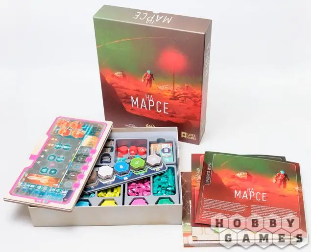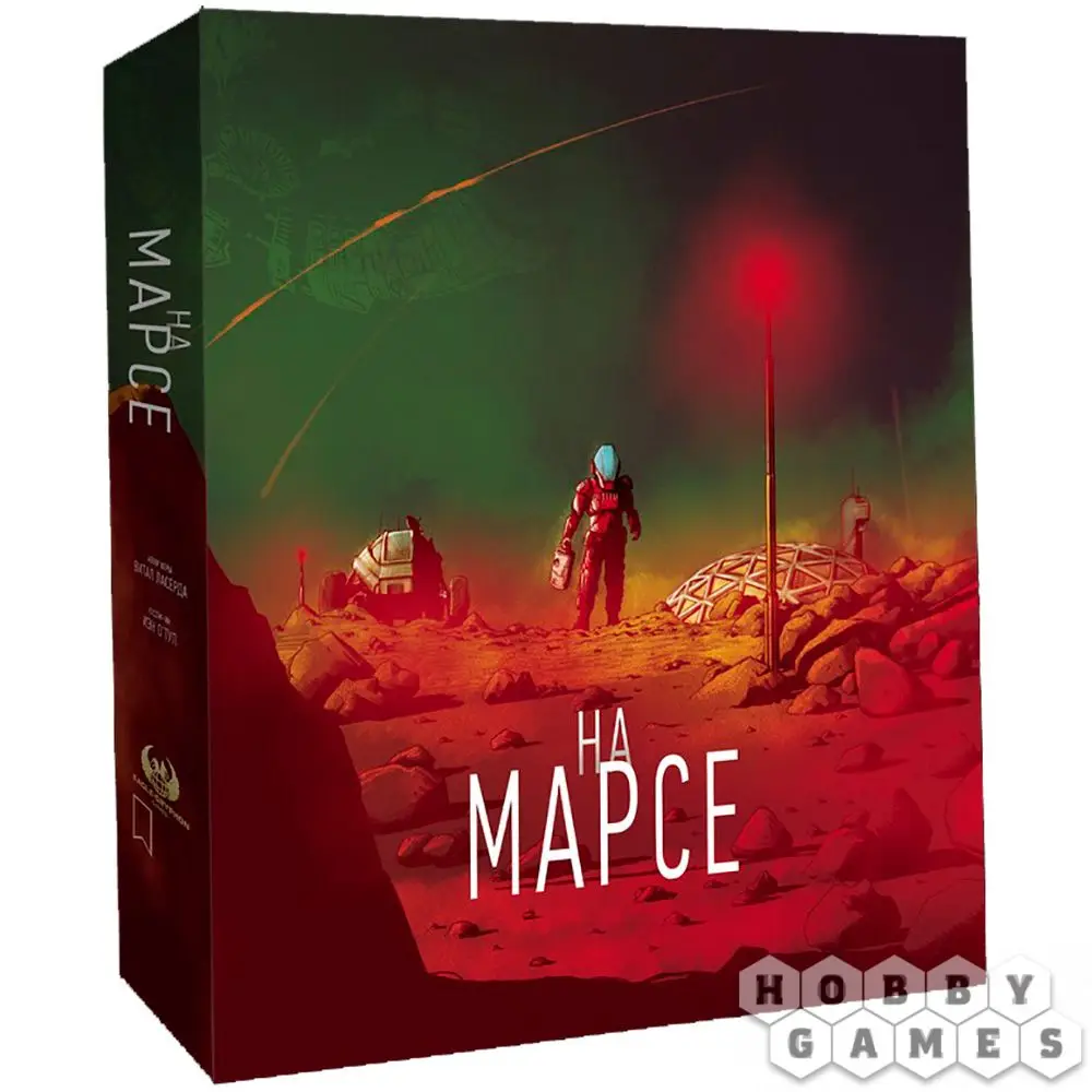 "На Марсе" разработана геймдизайнером Виталом Ласердой, который знаменит своим умением создавать сложные и хорошо сочетающиеся игровые механики. Предыдущие игры Ласерды – это посвящённая виноделию элегантная Vinhos, погружающая в автопром Kanban: Driver's Edition и The Gallerist, знакомящая игроков с миром искусства и коллекционирования. "На Марсе" была номинирована на премию The Laurels: Best Architect Games Of 2019 от The Cardboard Republic и уже заслужила горячую любовь и признание поклонников хардкорных стратегий. Это непростое испытание способности выбирать оптимальный вариант, в котором тактика тесно переплетена со стратегией. Широкий спектр возможностей хода позволяет гибко реагировать на изменение игровой ситуации – но главное понять, какая тактика приведёт вас к победе и титулу лучшего колониста. Такое обилие переменных делает игру очень вариативной – и, соответственно, реиграбельной. Каждая новая партия будет уникальной и заставит вас ломать голову снова и снова. Игра рассчитана на компанию до 4 человек включительно. Также есть соло-режим, в котором вам придётся играть против самого Ласерды – вы будете выполнять действия за него, ориентируясь на специальную колоду карт и правила одиночной игры. Выполняйте тайные и явные цели, стройте здания для добычи необходимых ресурсов и идите к победе!