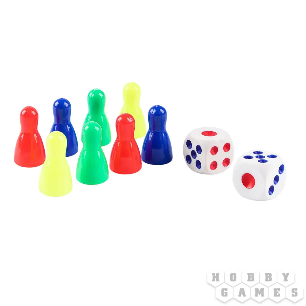 Набор для игры в кости состоит из восьми фишек и двух кубиков, выполненных из прочного пластика. Фишки имеют яркие цвета, что делает игру более интересной и увлекательной. Кубики имеют стандартные грани и помогут определить исход игры.
