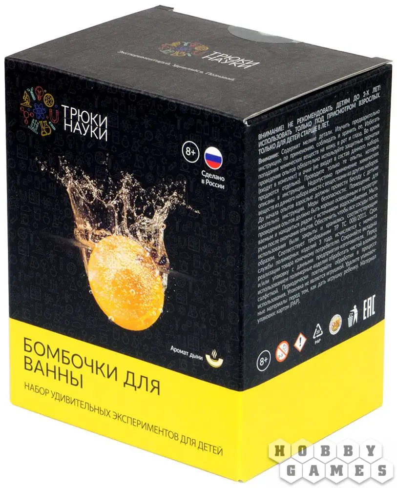 В коробке с опытом содержится все необходимое для эксперимента, а также инструкция на русском языке с простыми и четкими указаниями по созданию бомбочки, понятными для ребенка.