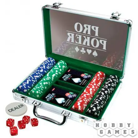 В данном комплекте вы найдёте всё необходимое для игры в классический покер. Здесь есть 200 стандартных фишек для профессиональной игры (11,5 гр.), фишка дилера, 2 колоды игральных карт, соответствующих качеству карт казино, а также 5 игральных костей. Все компоненты убраны в элегантный и прочный алюминиевый кейс.