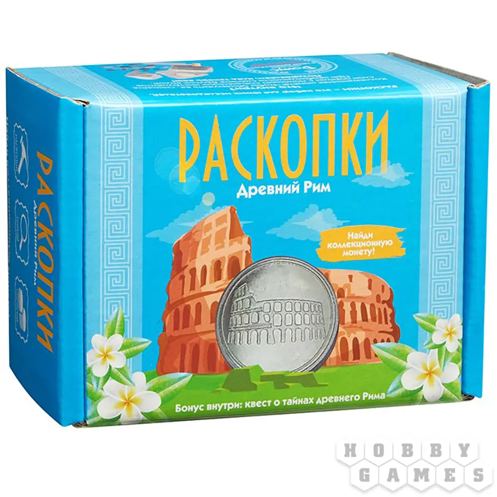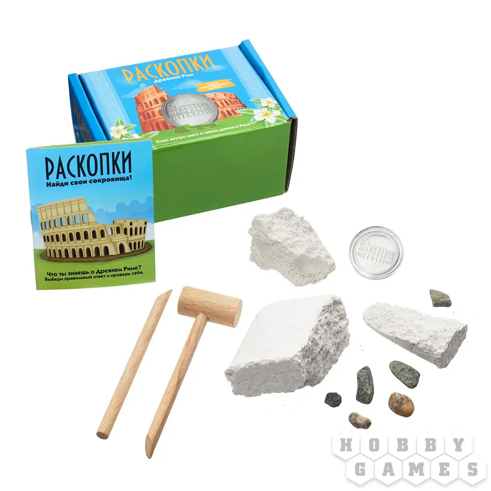 Приготовьтесь ощутить себя в роли самого настоящего археолога! Увлекательные раскопки и поиск сокровищ теперь могут с лёгкостью оказаться на вашем столе. Древние артефакты и доисторические драгоценности заключены внутри бруска из окаменелого грунта. В наборе "Древний Рим" в грунте спрятана настоящая коллекционная монета племени и брошюра с мини-викториной.
