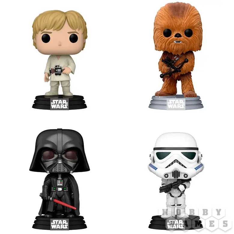 Перед вами набор фигурок Funko POP! Звёздные войны: Люк Скайуокер, Чубакка, Дарт Вейдер, Штурмовик.