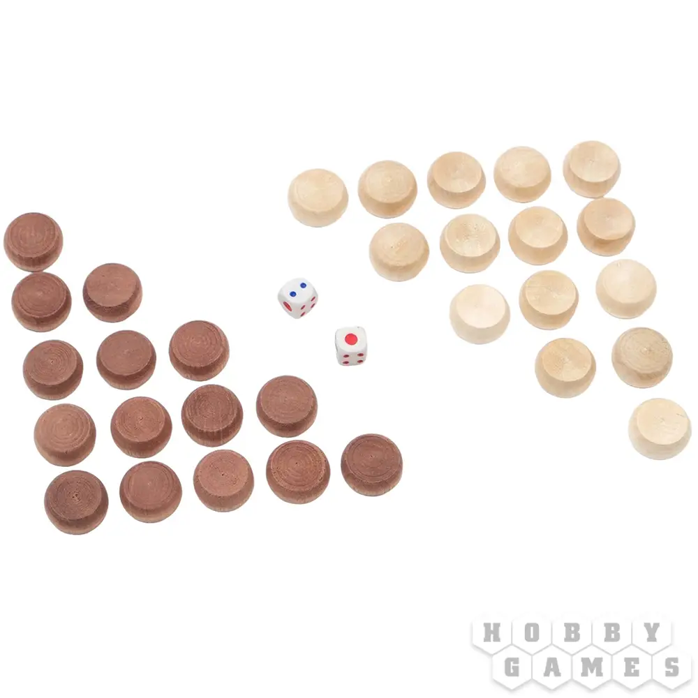 Деревянные фишки для нард — это изысканный и классический аксессуар для любителей настольных игр. Изготовленные из натурального дерева, они обладают прекрасной фактурой и приятным на ощупь поверхностным покрытием. Фишки для нард имеют гладкие и эргономичные формы, что позволяет легко и комфортно перемещать их по игровому полю. Они также обладают отличной устойчивостью и долговечностью, что делает их идеальным выбором для частого использования.