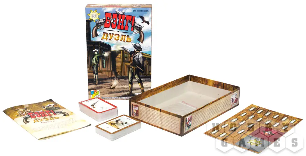 "Бэнг! Дуэль" – это дуэльная карточная настольная игра в известной серии вестернов "Бэнг". Да, теперь это игра лишь для двух игроков, но зато со свежей механикой и с новыми правилами. Без изменений остались: сеттинг, общий стиль оформления да некоторые знакомые и самые любимые карты из предыдущих частей. Сама же игра блистает перед нами совершенно новыми красками.