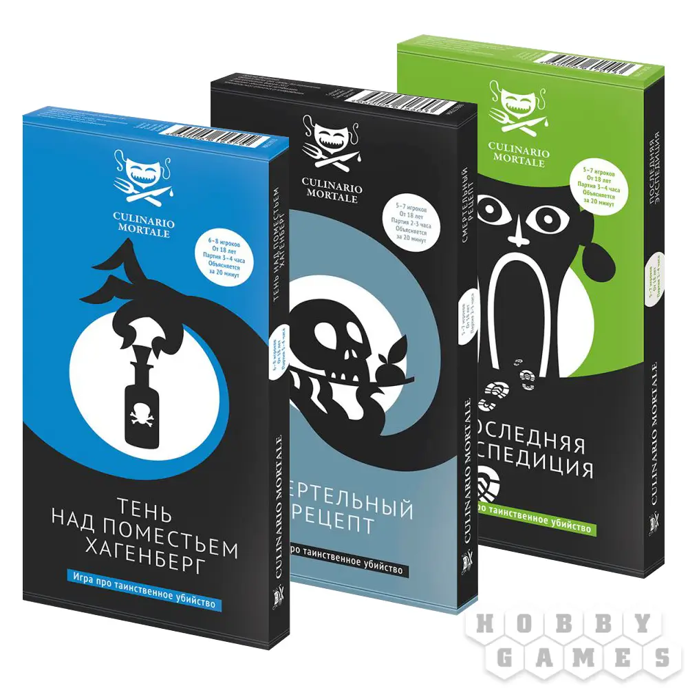 Набор включает в себя игры: "Culinario Mortale: Последняя экспедиция", "Culinario Mortale: Смертельный рецепт" и "Culinario Mortale: Тень над поместьем Хагенберг" со скидкой 10%.