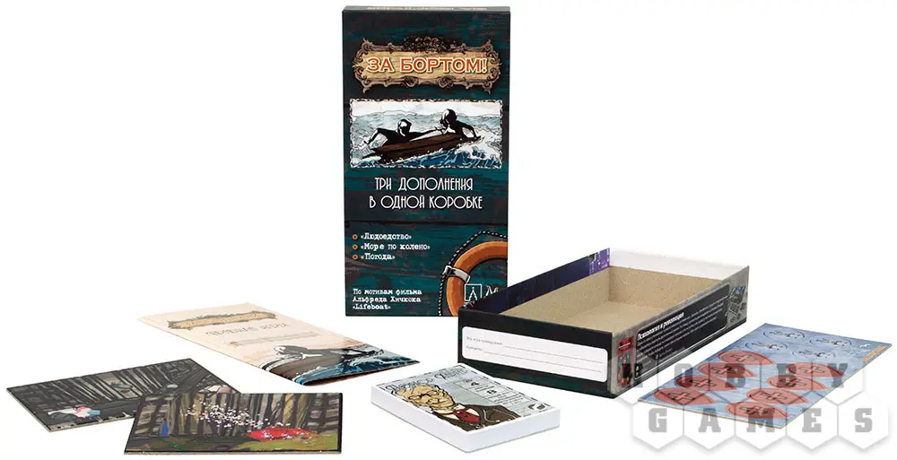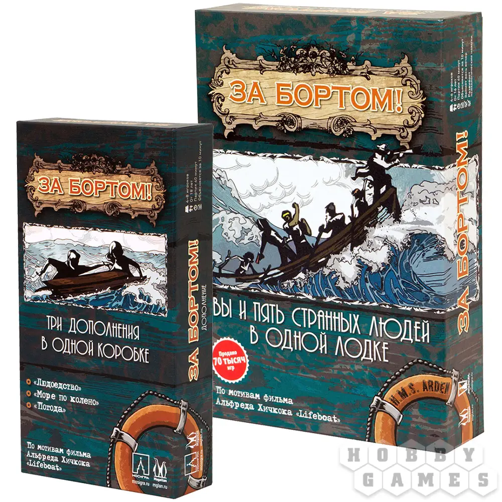 Набор "Море по колено" включает в себя игры "За бортом" и "За бортом! Три дополнения в одной коробке" со скидкой 10%.