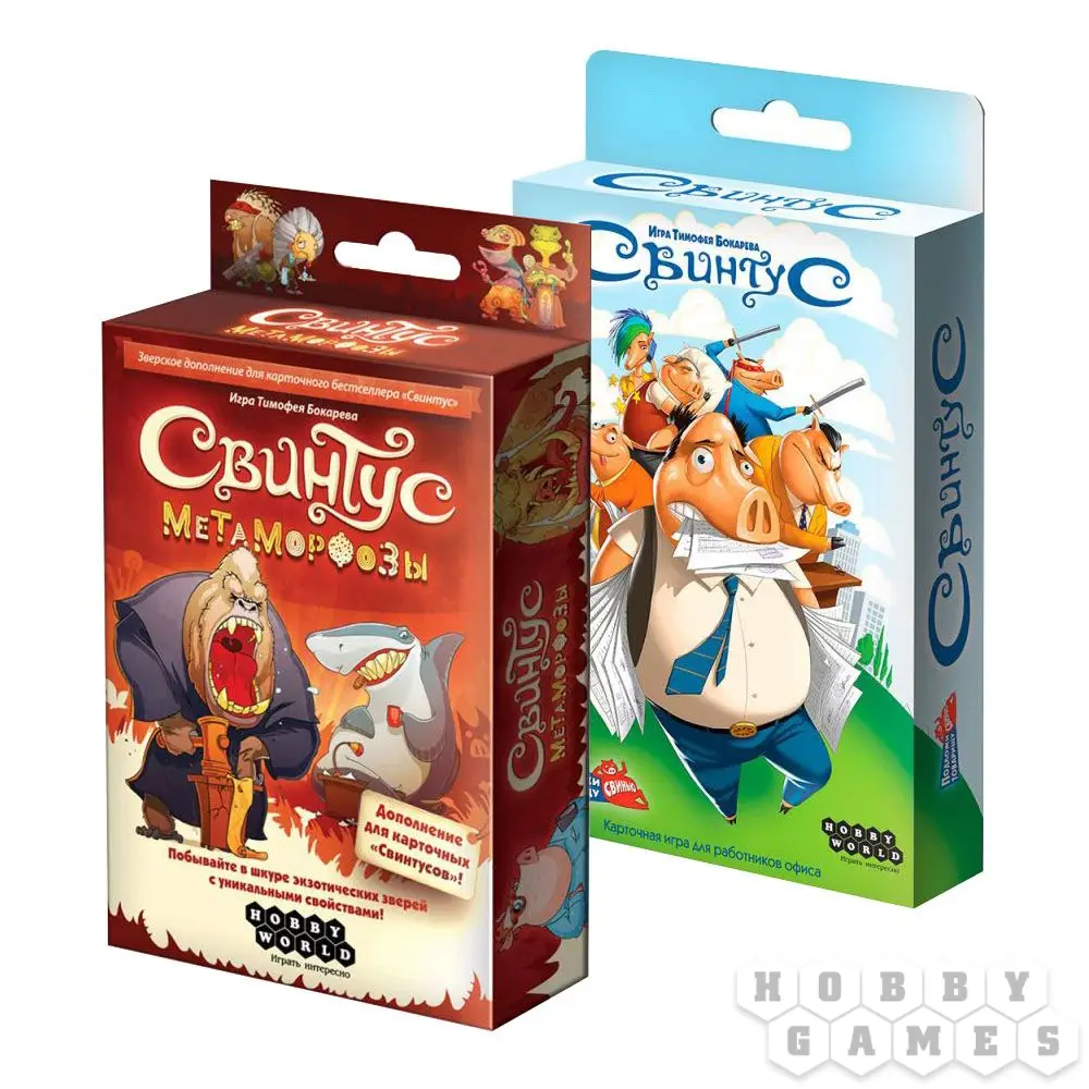 Набор включает в себя игру "Свинтус" и дополнение "Свинтус: Метаморфозы" со скидкой 10%.