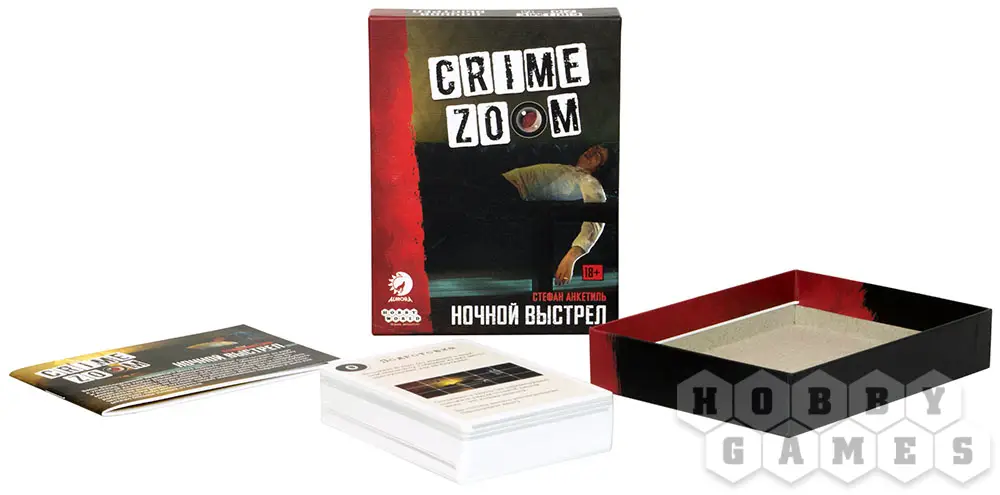 "Crime Zoom: Ночной выстрел" – это кооперативная карточная игра в жанре детектив. Как и обычно, игроки примеряют на себя роль следователей и раскрывают преступления. С чего начать? Конечно же, с изучения места преступления – большой иллюстрации, составленной из нескольких карт. Чтобы изучить улику, карту нужно перевернуть, а после выбрать, какие зацепки вы будете расследовать дальше. Настоящие асы детективного ремесла раскрывают дела, используя минимум улик – а больше им и не нужно. Для победы игрокам нужно найти преступника, найти орудие преступления и выяснить мотивы его совершения. Разгадайте, что произошло на самом деле!