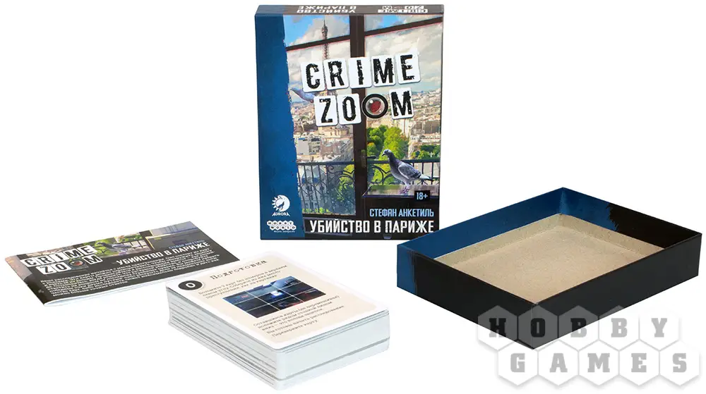 "Crime Zoom: Убийство в Париже" – это кооперативная карточная игра в жанре детектив. Как и обычно, игроки примеряют на себя роль следователей и раскрывают преступления. С чего начать? Конечно же, с изучения места преступления – большой иллюстрации, составленной из нескольких карт. Чтобы изучить улику, карту нужно перевернуть, а после выбрать, какие зацепки вы будете расследовать дальше. Настоящие асы детективного ремесла раскрывают дела, используя минимум улик – а больше им и не нужно. Для победы игрокам нужно найти преступника, найти орудие преступления и выяснить мотивы его совершения. Разгадайте, что произошло на самом деле!