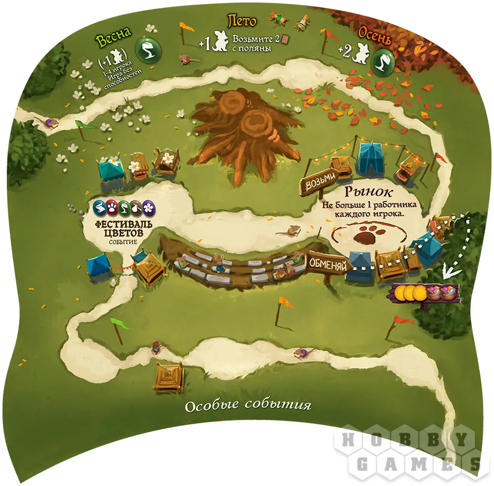 "Эверделл: Фестиваль" – это дополнение, которое позволяет играть вшестером, а кроме того добавляет новые возможности для обитателей сказочного лесного мира. Теперь у каждого игрока в начале игры появятся бонусные способности, а на рынке можно будет получить необходимые ресурсы. Кроме этого, на церемонии награждения будут отмечены призами победители по какому-либо из показателей, а к уже знакомым миплам добавятся новые – красные кардиналы и жабы.