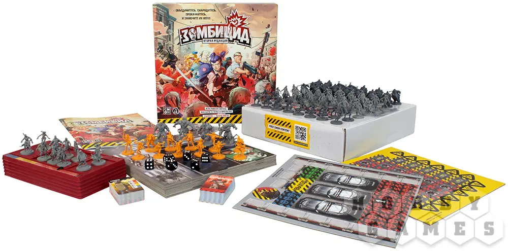 "Зомбицид. Вторая редакция" – настольная игра в сеттинге зомби-апокалипсиса для 1-6 игроков, которая содержит обновлённые материалы и улучшенные правила. Вам по-прежнему придётся выживать в суровых условиях независимо от собственных желаний и бороться с целыми ордами оживших мертвецов. Каждая игровая миссия предлагает свой сюжет, свои цели и особые правила. Здесь встречаются 4 типа зомби: ходок, толстяк, бегун и отродье, действиями которых управляет сама игра при помощи карт. Нововведения второй редакции значительно упрощают действия: ускорена подготовка к партии, очки опыта заменяются на очки адреналина, больше не нужно совмещать несколько карт, чтобы собрать оружие, появляются расширенные правила по тёмным зонам, дополнительные режимы игры и новые умения.