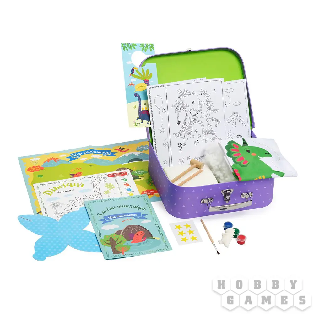 Страна динозавров ждет юных исследователей! Чемоданчик с увлекательным квестом окунет ребенка в атмосферу доисторических времён. Целый парк динозавров, целое море развлечений и радости! Вас ждут сразу несколько наборов для рукоделия, грунт для археологических раскопок, открытки-раскраски, календарь настроения и многое другое!