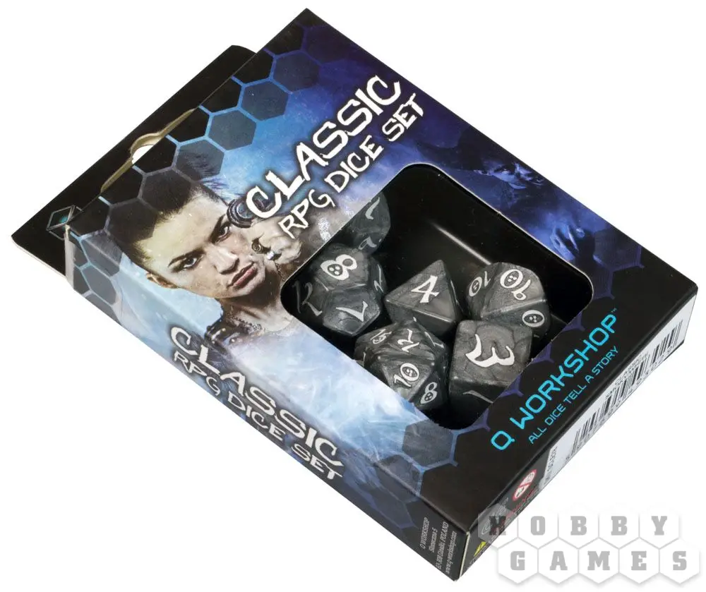 Набор кубиков для RPG "Классика" состоит из 7 кубиков - D4, D6, D8, D10, D12, D20, D100.