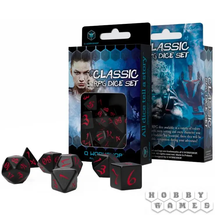 Набор кубиков для RPG "Классика" состоит из 7 кубиков - D4, D6, D8, D10, D12, D20, D100.
