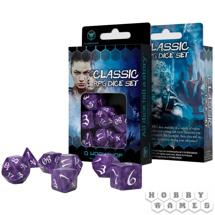 Набор кубиков для RPG "Классика" состоит из 7 кубиков - D4, D6, D8, D10, D12, D20, D100.
